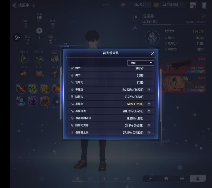 图1图2副属性为全输出属性,图3为人物整体属性包含核心,副属性的选择对应不同职业,对应人物技能,输出职业选择装备副属性的前提是图3和图5,优先攻击越高越好,同时暴击率数值要达到8000以上,虽然4000多就能达到50%上限,但是碰到比你等级高的怪,属性是会降低的。50%以上需要技能和祝福石技能及暗影来增加。爆伤达到200%,准确率达到90%(我进图加2000准确率)。增伤和防御贯穿也是越多越好,除了人物技能主属性不推荐某一个属性过高,先达标,太高稀释大。图4和图6代表人物技能,副属性在达标的情况下看人物技能堆攻击或防御或体力。下篇讲核心,其实应该和装备一起,但是篇幅有限。