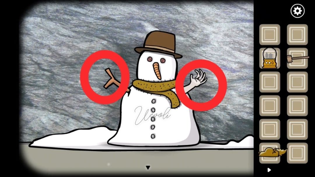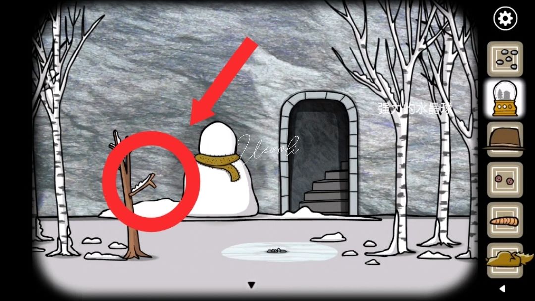 ◆成功后雪人的鼻子开始转动,鼻子朝向哪边,就点击哪边的树枝,树枝消失后再次点击、出现手,此时另一边的树枝也可以拔出来。然后进入下一阶段。