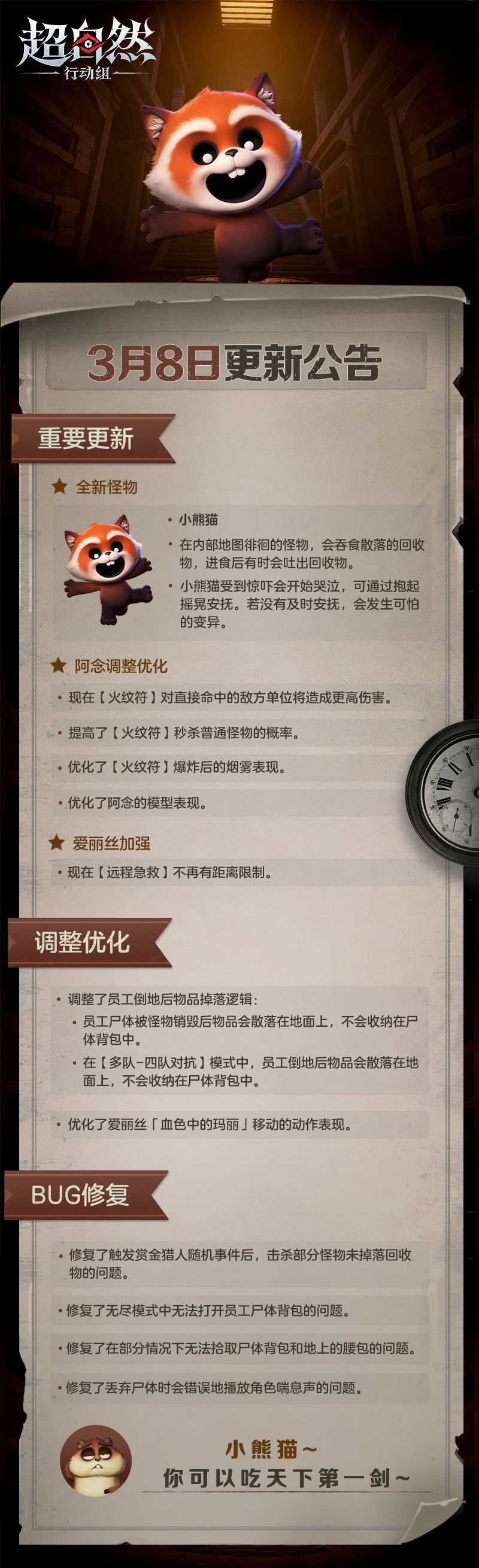 3月8日更新——小熊猫上线!阿念&爱丽丝加强!