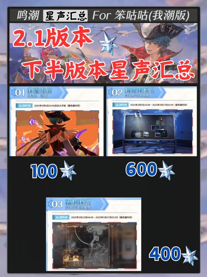 2.1下半版本更新啦,帮大家总结了一下下半版本可获取的星声和各种活动福利!