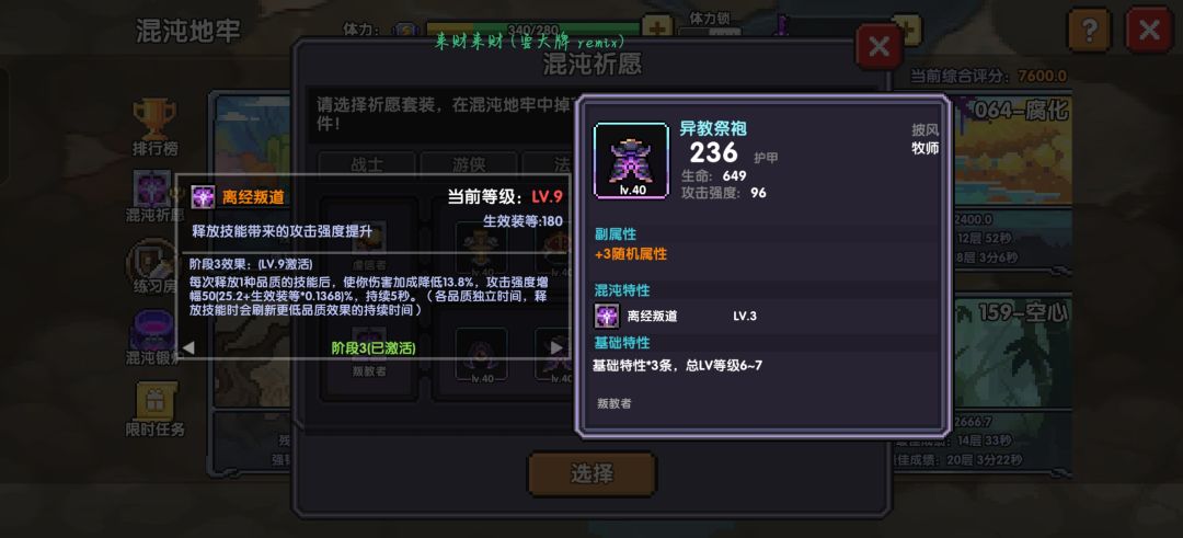 牧师职业套核心副词条:救援-改 如图: