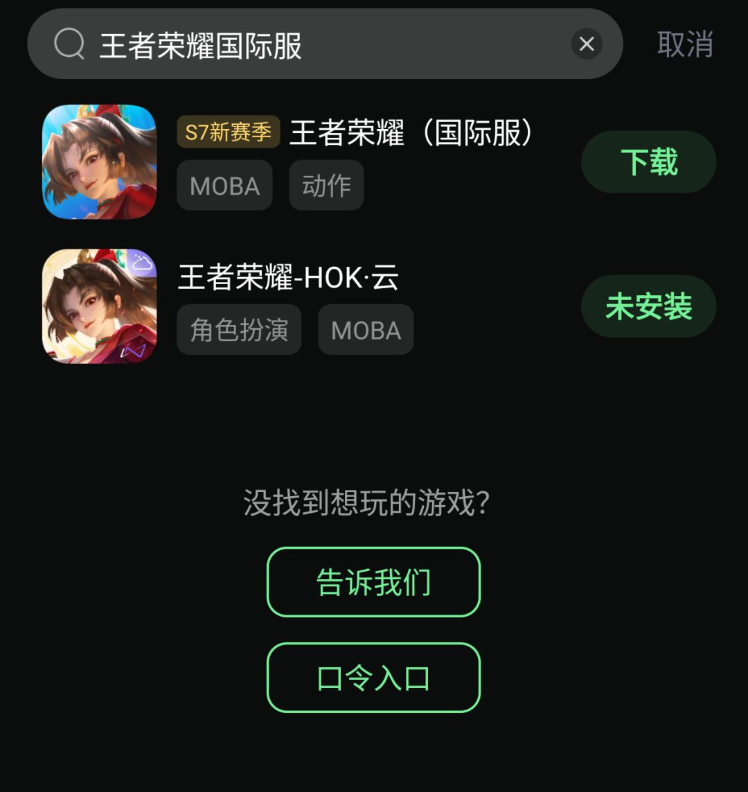 第三步:在奇游内搜索【王者荣耀国际服】即可下载游戏