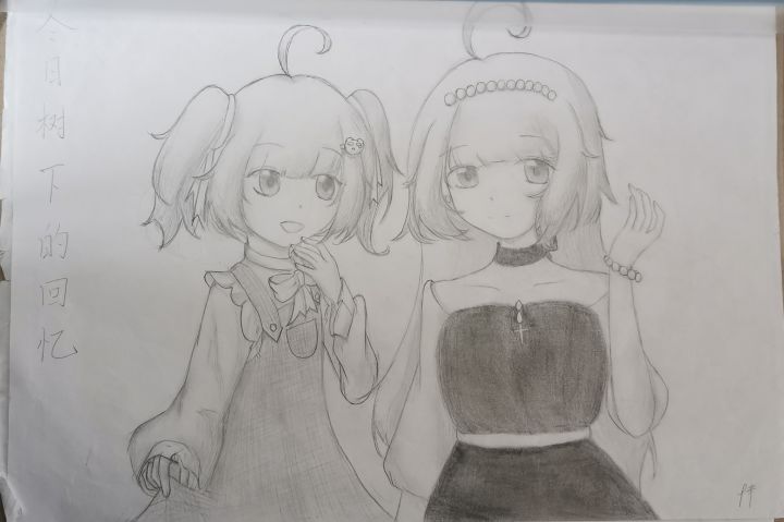 因为一些限制只能用铅笔黑白画啦,那个小忆的衣服是用的二b铅笔的,真的不太好铺呢,感觉铺的不是很均匀