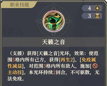 技能描述最后一句:本光环持续2回合,不可驱散,无法免疫。