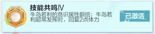 增加携带者的意识,意识大于20%时,每溢出的意识可以额外增加力量。只加意识和力量这两种高贵属性,不过不到共鸣10,很难叠满。不管是一阶还是满阶,都需要120%意识才能叠满。但是及川的存在可以给全队多增加很多意识,哪怕牛岛没能共10,潜能2号位带意识,局内也能叠80%-100%左右的意识,能吃满一半多的力量加成,共鸣10直接随便吃满专武。