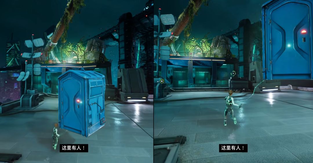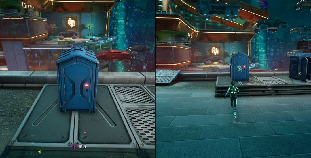 厕所这里依旧是小粉进入厕所,但是不是扔到对面,而后旁边发出绿光位置抛出!