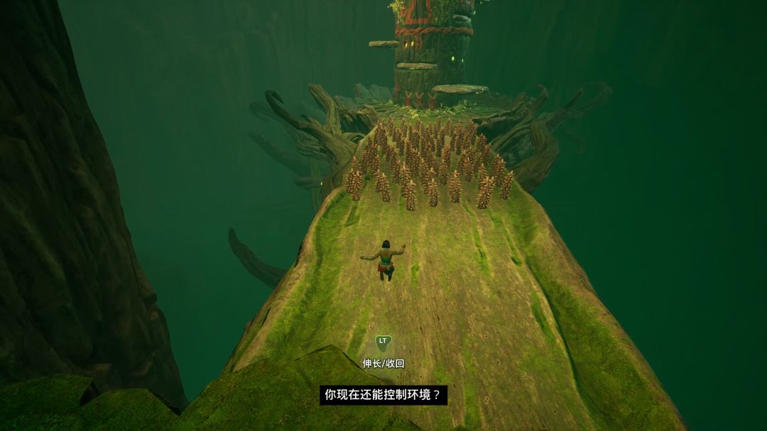 变身树人控制藤曼移动,猩猩攀爬藤蔓上,期间注意蜘蛛