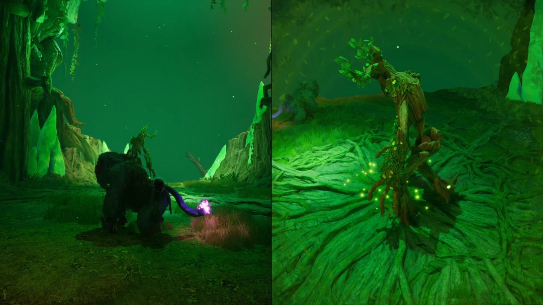 碎裂的空地猩猩可以猛烈锤动,变身树人后输入能量后枯木会撑起石头,趁此机会变身渡过