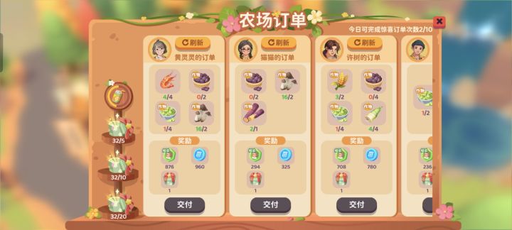 2、能肝,但是不想硬肝,做完20个订单领奖励。那就选复杂的订单。