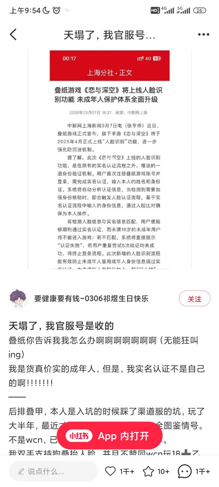 我成年人,叠纸账号是换绑了暖的一个自抽号,现在恋与深空和暖在一起,被自抽号的实名给怼掉了,虽然恋与深空开服的时候我填的自己的实名,但是现在账号中心只能看见暖暖那个自抽号的信息,会不会影响到啊