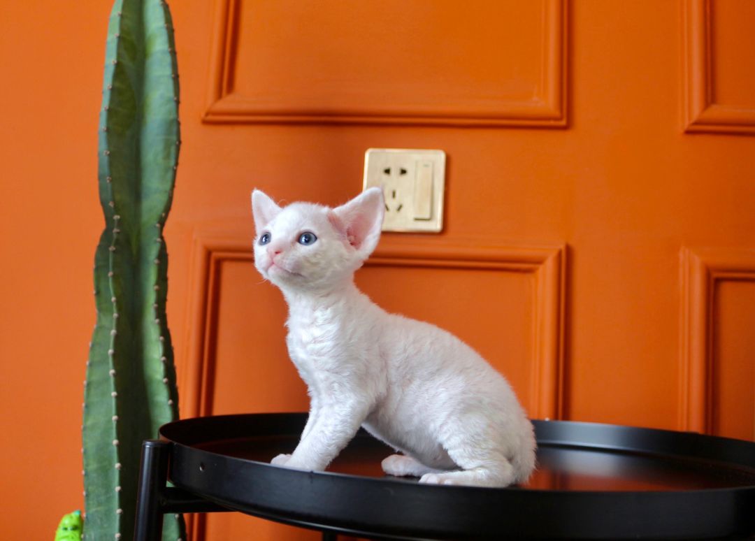 兜儿卷,看这大大的耳朵和人型的卷毛,应该是德文卷毛猫。特点是卷曲的短毛,大而立体的耳朵,性格活泼好动、聪明粘人。