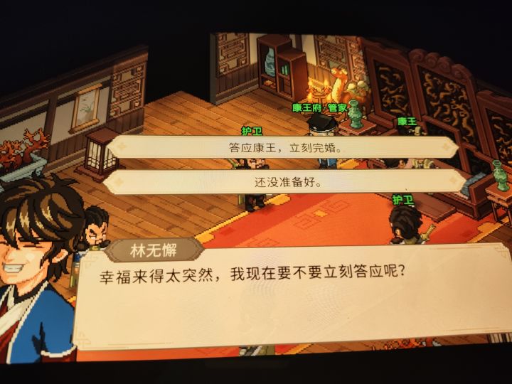 我听说和郡主完婚有送礼debuff,所以不想现在结。但剧情推进到需要康王的情况(康王手谕和除籍),我一进去他就要求完婚怎么办