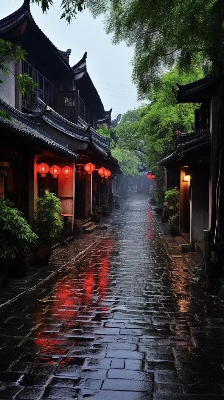 雨后的三坊七巷,宁静而古朴。石板路上水珠闪烁,映照着两旁郁郁葱葱的树木。红色灯笼在湿润中透出温暖光芒,为古巷增添一抹亮色。远处雾气缭绕,为这片古老天地披上神秘面纱。每一步都踏在历史的痕迹上,感受岁月静好,诗意盎然。