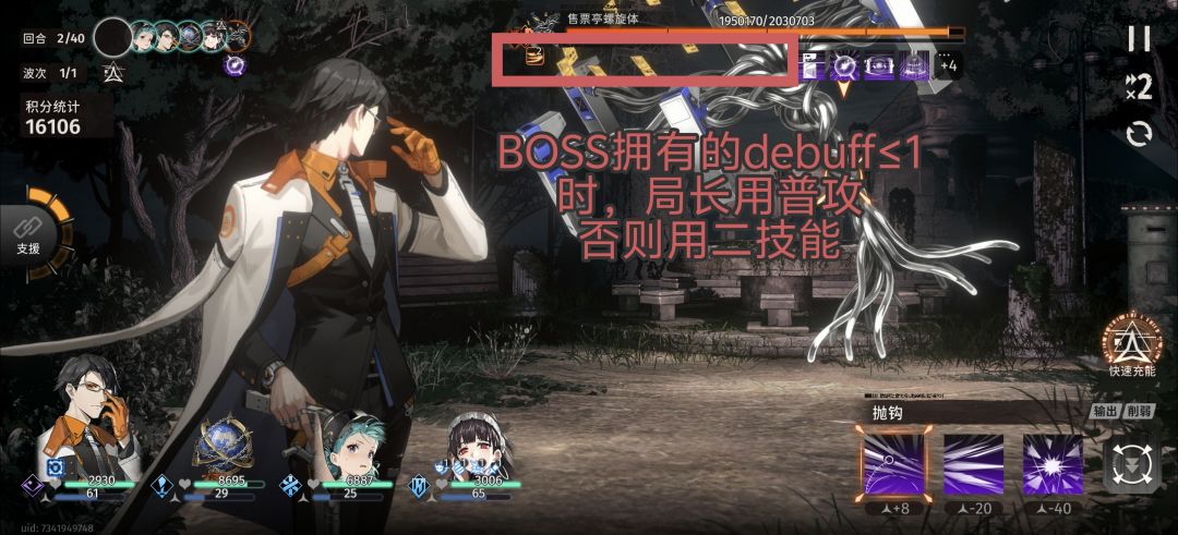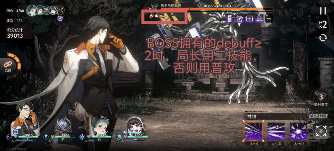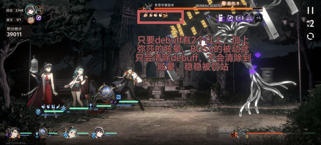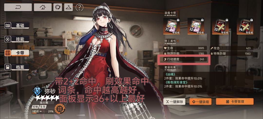 硬性要求:弥莎面板要36+命中以上,局长的速度要比弥莎快(实测BOSS会优先清除先上的debuff,为了保留弥莎的眩晕,局长要先上debuff)