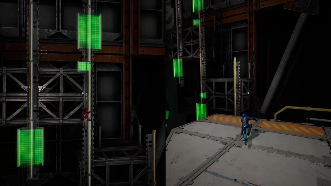 先爆破蓝色光罩、随后是红色,接下来立刻抓取钩锁过去