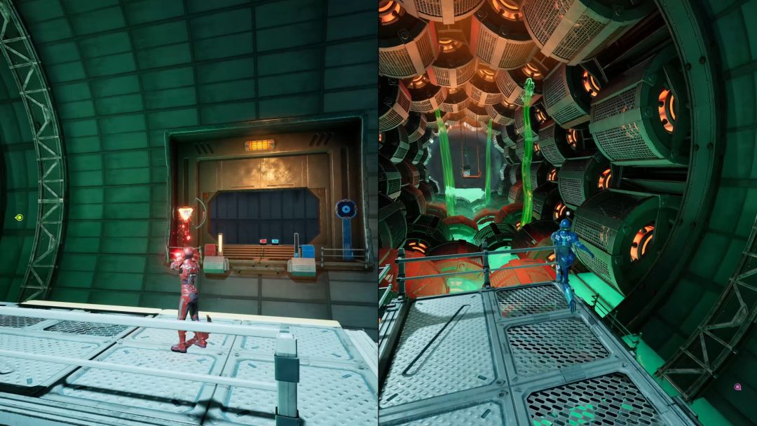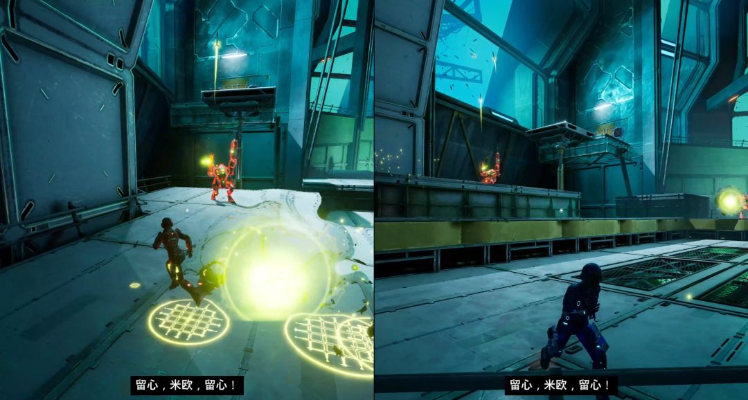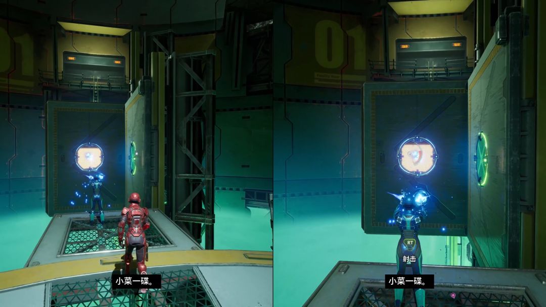 这个位置需要两个人一起来,配合射击开门以及护盾爆破!