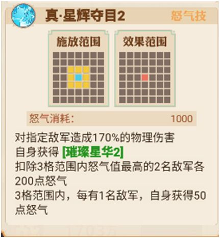 3、怒气控制:怒气技能扣除3格范围内2名敌军各200怒气。被动技能3,受到敌军主动攻击时,偷取其100怒气。