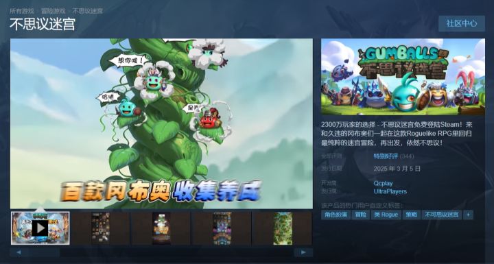 不思议迷宫上steam为爱发电,目前特别好评