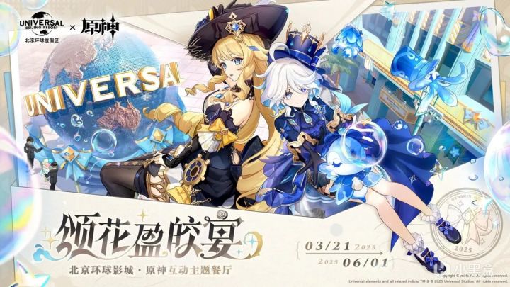 《原神》官方宣布与北京环球影 城进行联动,将在3月21日至6月1日北京环球度 假区春日狂欢活动期间推出《原神》互动主题餐 厅“颂花盈皎宴”。