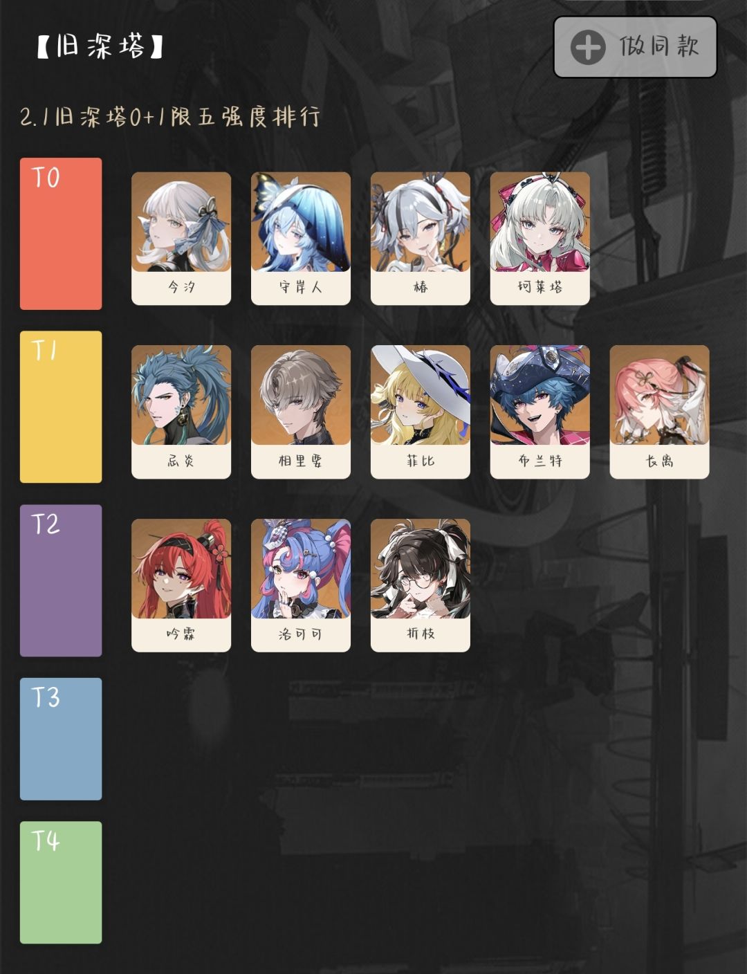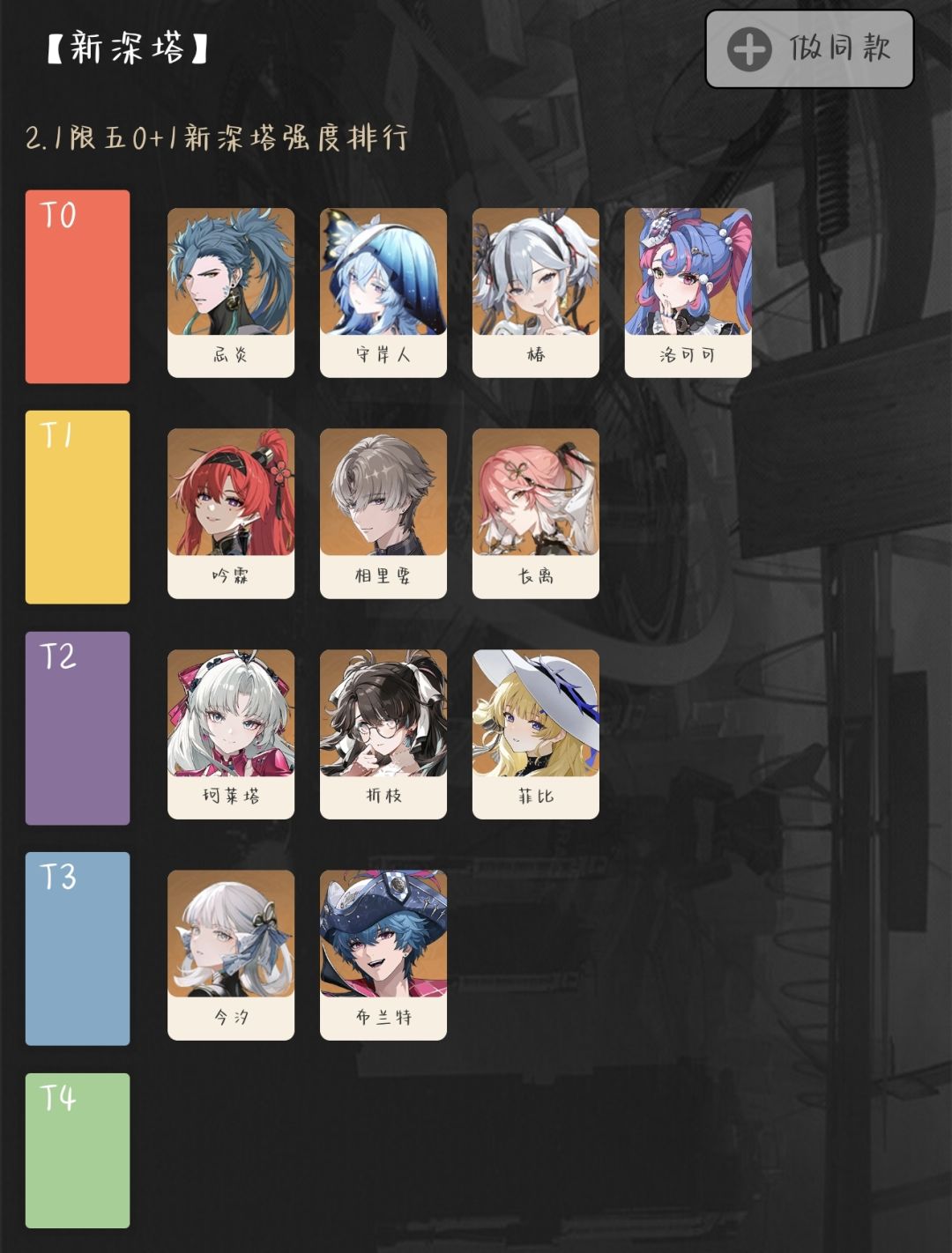 吟霖,后台挂件副c,本身数值较低难以当主c,旧深塔怪物数量较少,协奏较慢