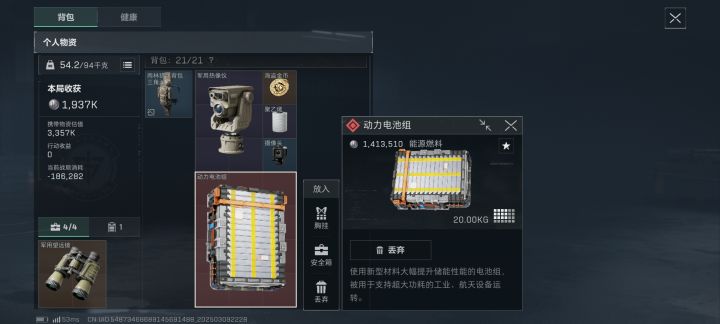 在一个三角洲交流群里面认识的大佬,因为鼠鼠说缺少火箭燃料升仓库,大佬直接连续带我五六把航天绝密,而且还是福利补偿局把把出大红。终于在倒数第二局出了火箭燃料,动力电池组是第一局出的。虽然鼠鼠用了将近100多万来凑战备。但是鼠鼠很开心有这么好心的大佬,三角洲的环境真是在我现在的感受中挺好的。真是感谢大佬再次诚挚的感谢。
