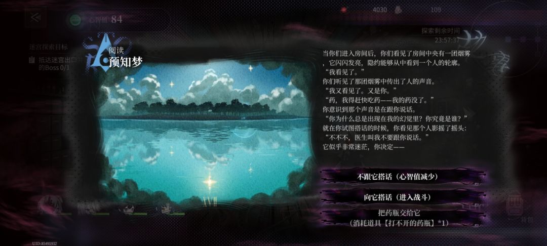 在一个男鬼魂的房间,预知梦事件,选择不跟他搭话,心智减少,就会获得这个药瓶