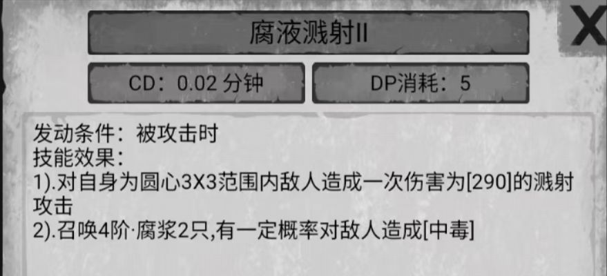 腐液溅射是 被打一次 对周围一圈造成伤害 然后召唤 2 怪 分裂是死亡召唤 2 怪 孢子喷射是召唤 3 个陷阱 踩到或 20 分钟后出现 3 个藓孢