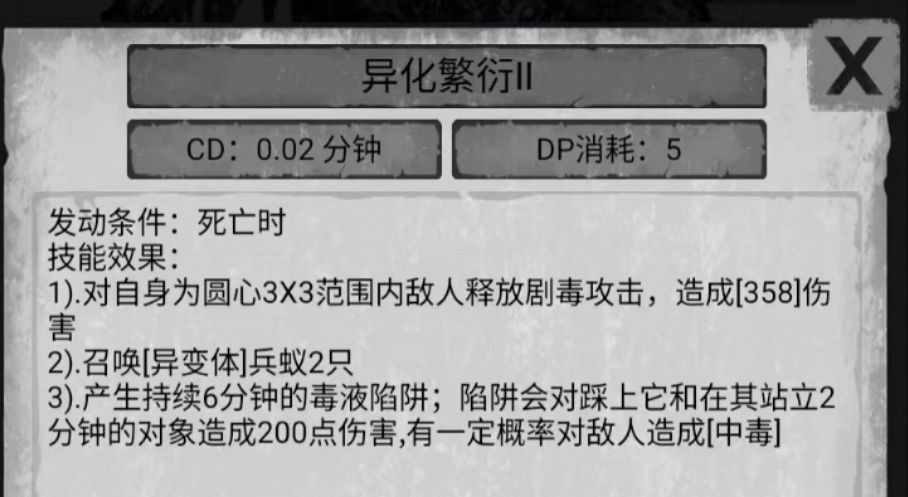 进入回合召唤一个出兵蚁的卵 死亡召唤 2 兵蚁