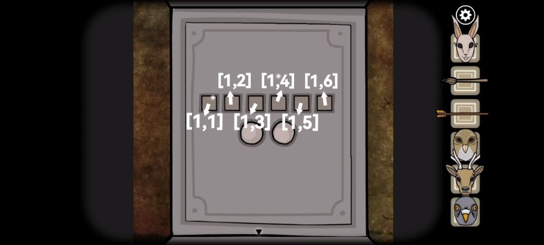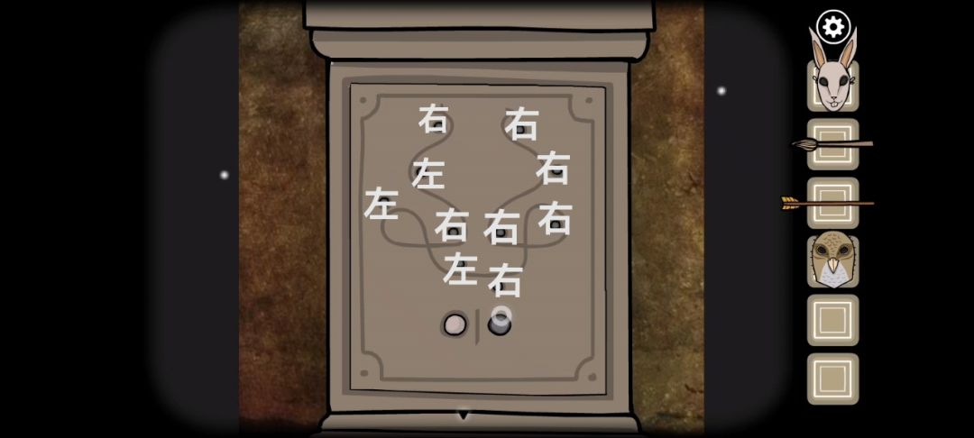 ③鹿:依次点击左右按钮:右→左→右→左→左→右→右→右→右→右。解谜成功后拾取[鹿面具]。