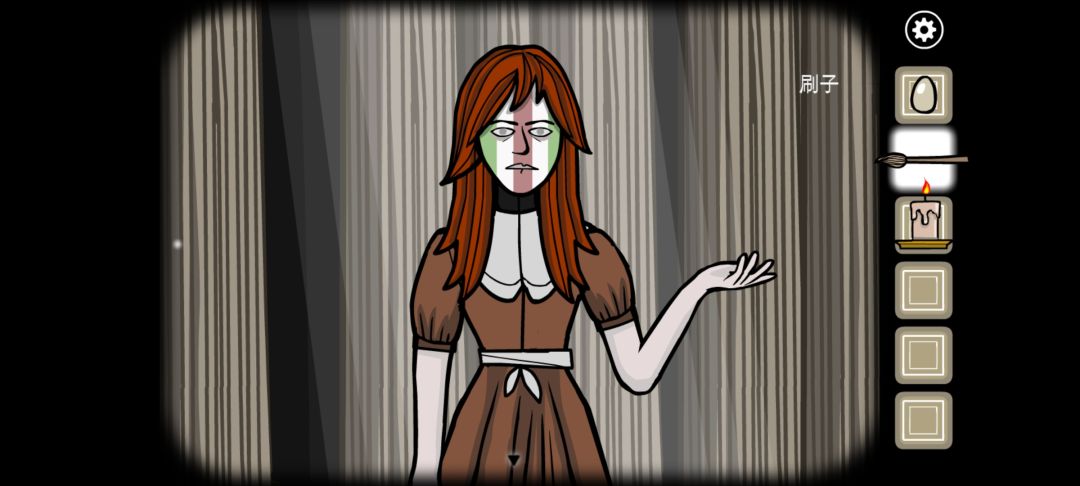 ◆回退场景后点击妹妹,用[刷子]蘸取妹妹手上的颜料,把妹妹的脸涂成这样,回退场景后,拾取[蜡烛]: