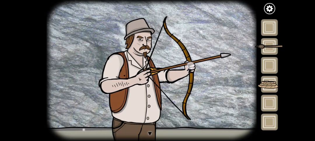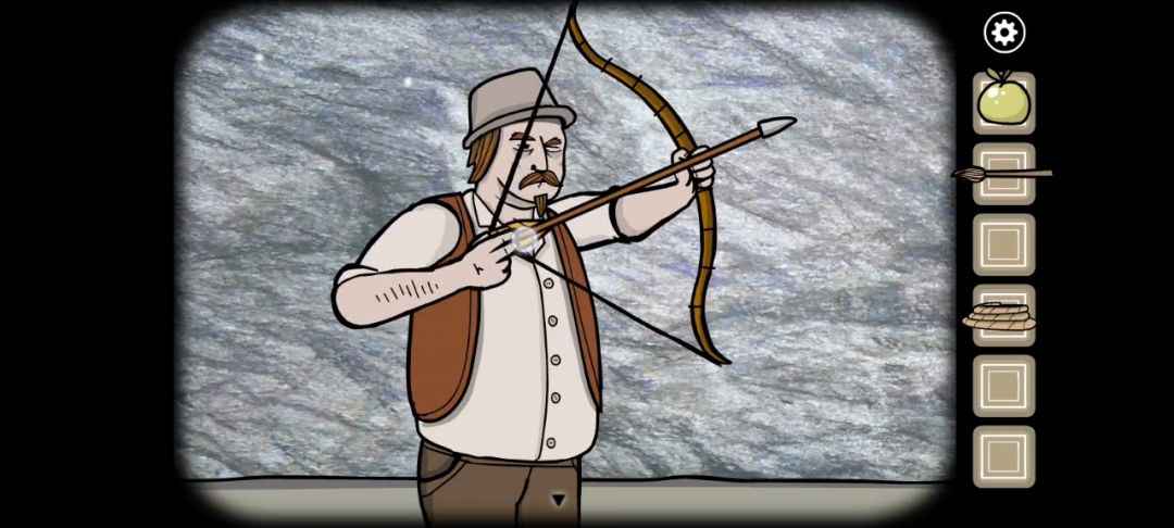 ◆回退至叔叔和弟弟的场景,把[箭]放在叔叔的弓上,点击叔叔的持弓手三次,直到呈现以下角度,然后点击拉弓手射箭。