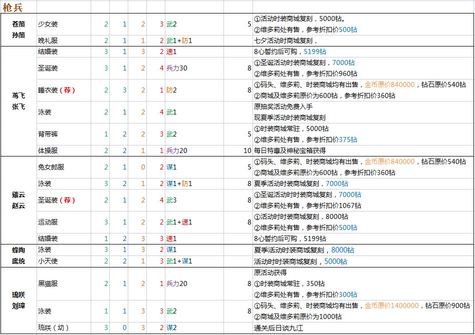 全时装属性、获取途径、价格、折扣(白皮书整合贴)