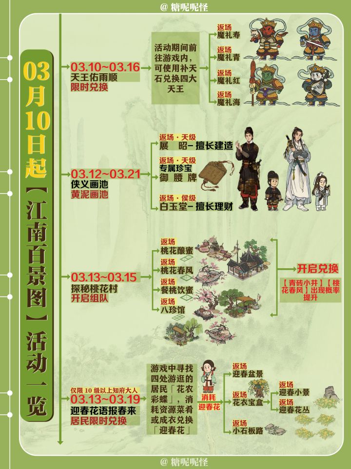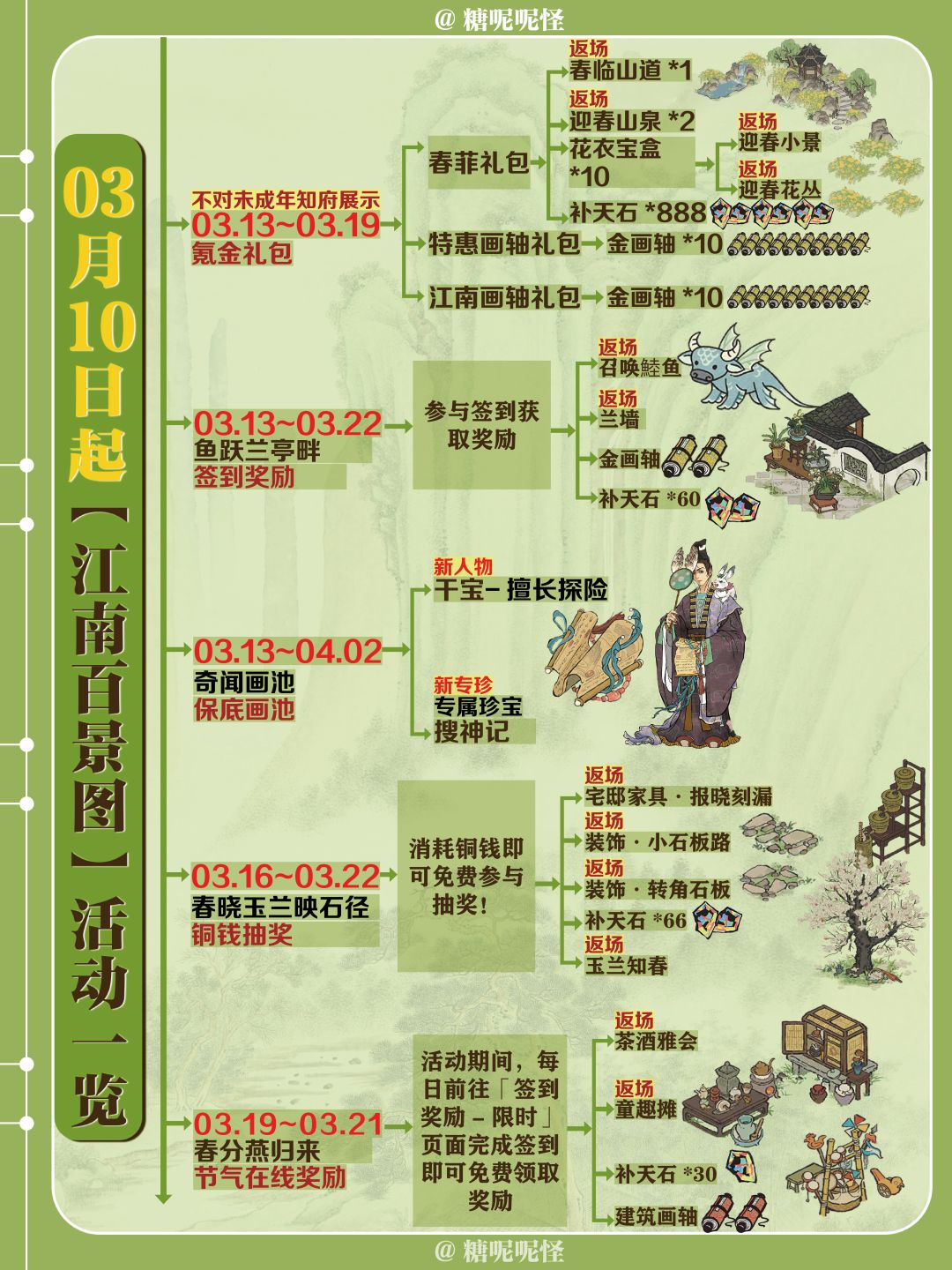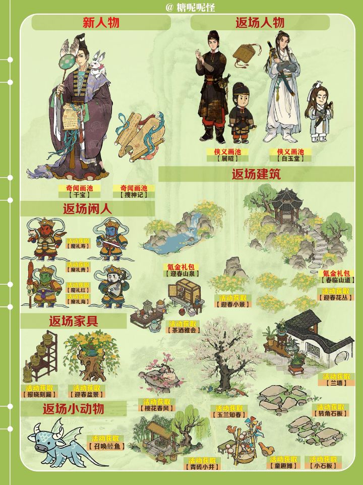 ⑥返场建筑:春临山道|迎春山泉|迎春小景|迎春花丛|茶酒雅会|玉兰知春|童趣摊|小石板|转角石板