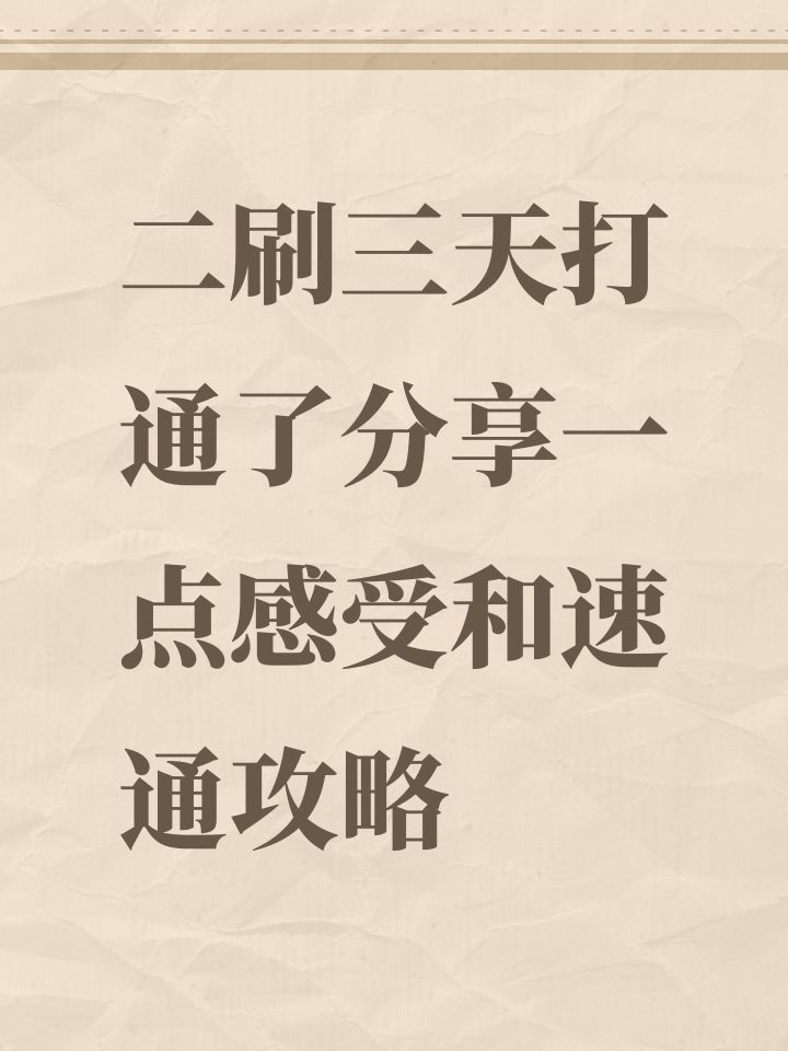 二刷三天打通了分享一点感受和速通攻略
