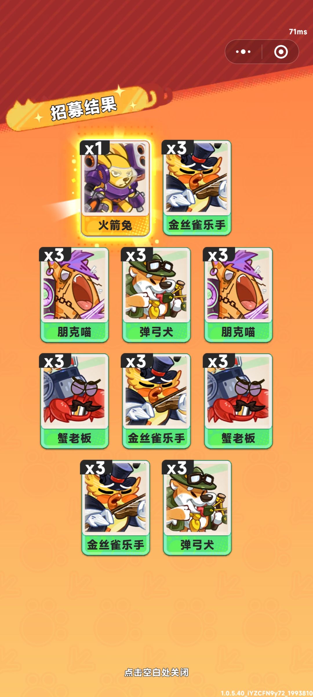 绿卡推荐:鸩鸟医生蓝卡推荐:投手熊、闪电鸵鸟;紫卡推荐:香蕉皮狐狸、马桶搋子鹦鹉、厨神熊;金卡推荐:行者猴、火箭兔、消防员大象、龟氶相(强在增加容错,但是门槛比较高,十级开始发挥作用)、卡皮巴拉、嘻哈黑豹。