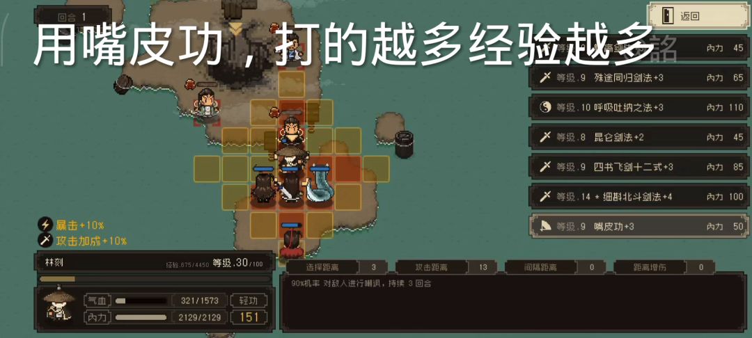 ◎操作原理:武功攻击到敌人会增加经验,嘴皮功范围较大,经验获取效率高,攻击高等级怪物经验更高,无名岛怪物等级高,获取经验效率也高(有点绕,总结,打人加经验,怪等级高经验多)