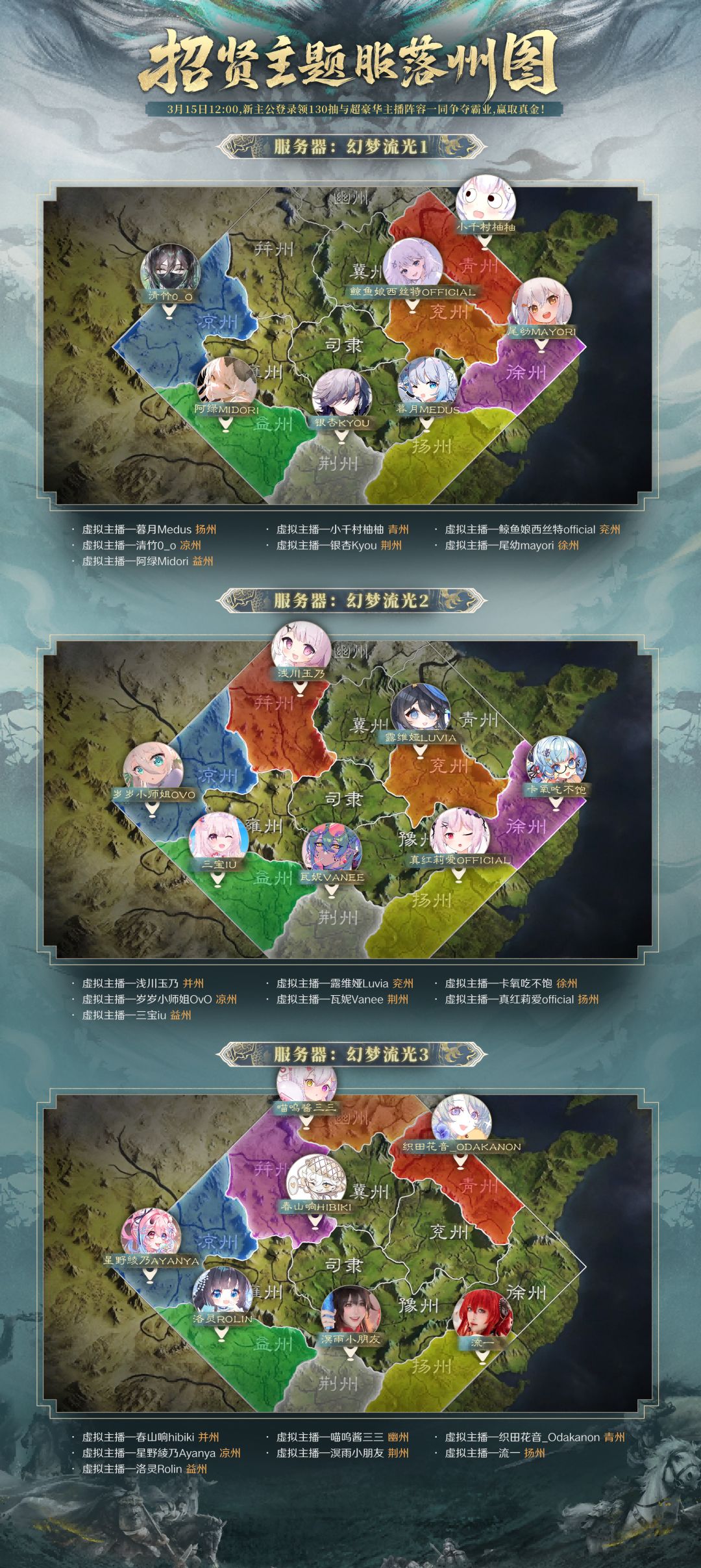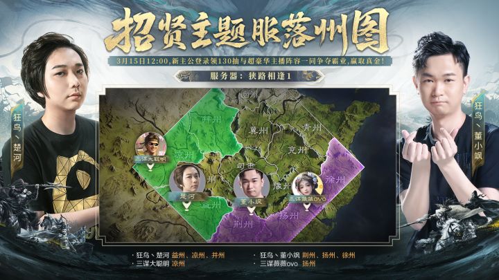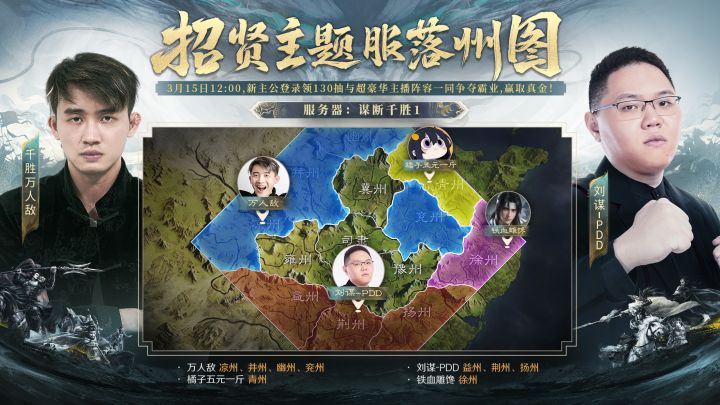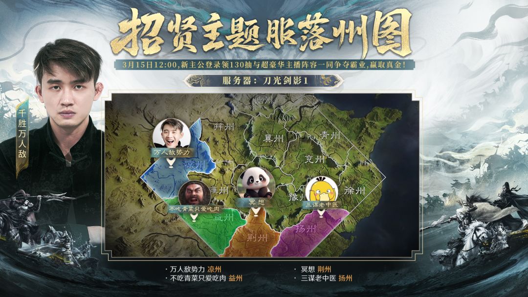 顶流主播PDD刘谋领衔,千胜万人敌、若风、微笑、草莓、楚河、董小飒等群雄齐聚,更有虚拟主播天团空降战场!3月15日,这场一触即发的全明星混战将上演何等好戏?且看各服务器落州布局,助你抢占先机!