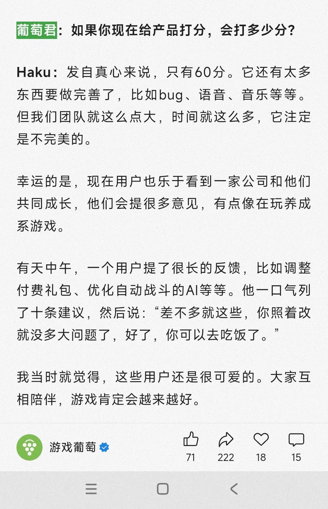 看了下采访,我认为制作人胆子可能偏小了点。