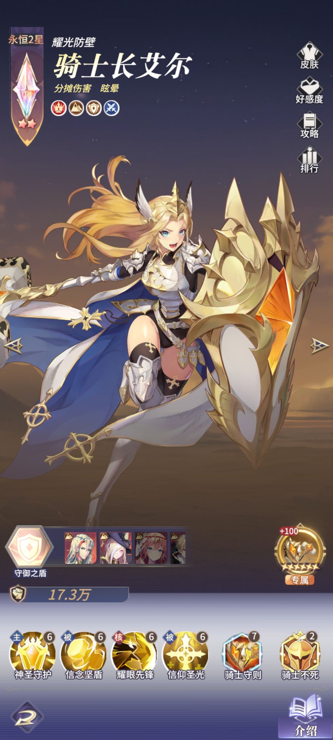 ◆骑士长艾尔能解除自身控制对前排敌人发动攻击,造成大量伤害并附加眩晕效果,而且能进入守护姿态提高格挡率;