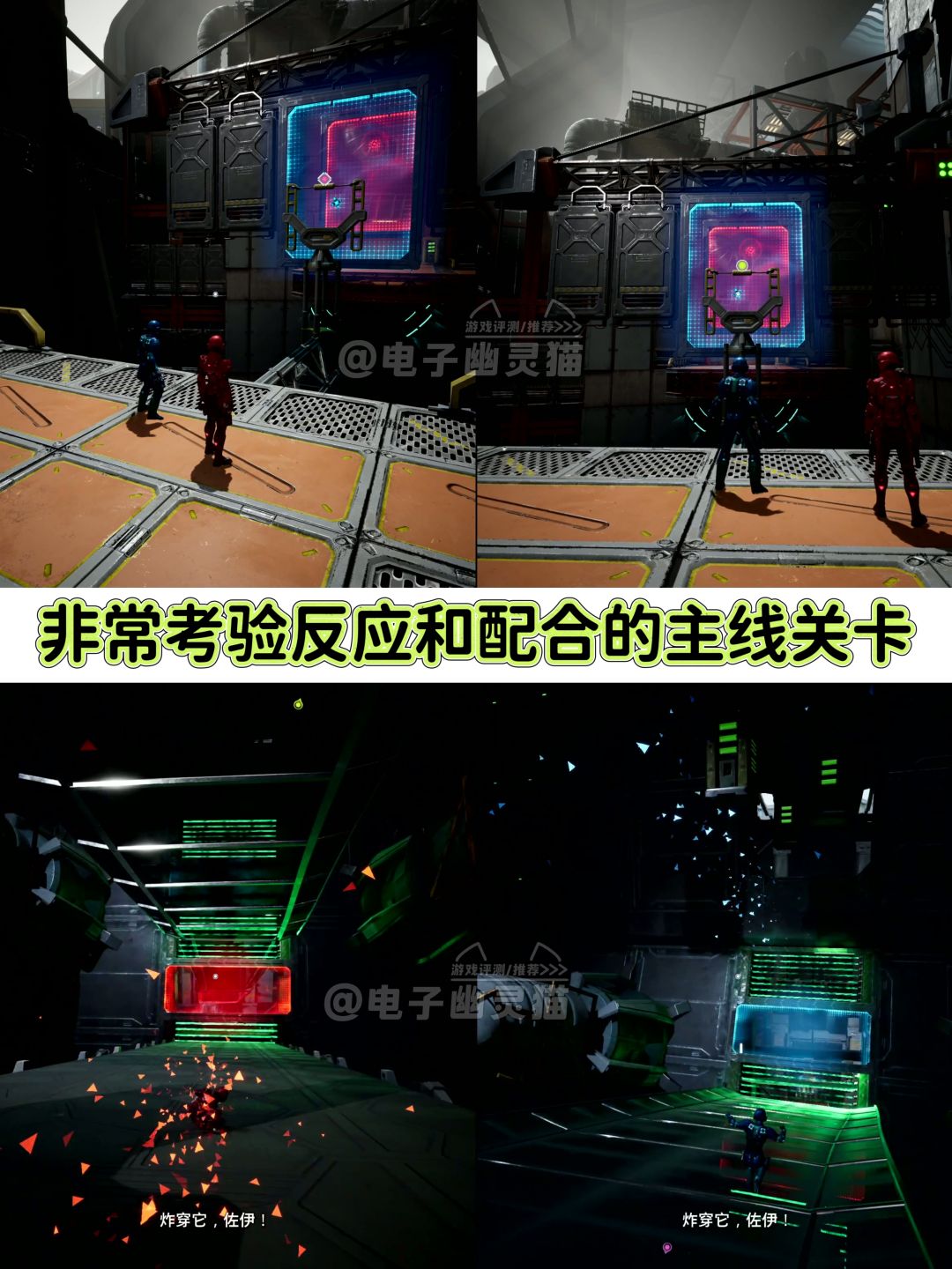 4️⃣最后一个是科幻世界某一段主线内容,依旧是极其需要配合,两个角色在匀速下滑,并且无法阻止,但同时我们还要互相利用手里的枪,来打碎阻挡对方的屏障等等。其实这种情况你就没有机会慢慢思考我们该怎么做,同时还考验操作,毕竟你瞄准歪了,没在时间内打爆屏障,你的队友可能就要无啦。不过体验下来,是真!的!刺!激!