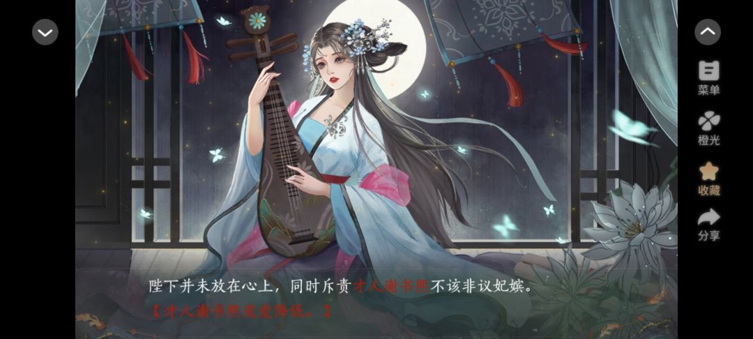 就这个宫斗爽!女儿进去后稳稳拿下狗皇帝的心,这个宫女上位谢书熙完全不是女儿的对手,后面还有个剧情没截到,把谢书熙打入冷宫变为废妃了。果然,腹黑性格的女儿是宫斗的一把好手。虽然不能亲身参与女儿的宫斗,但是每次出现这种剧情都让人感叹一句这图片画的太好看了吧。