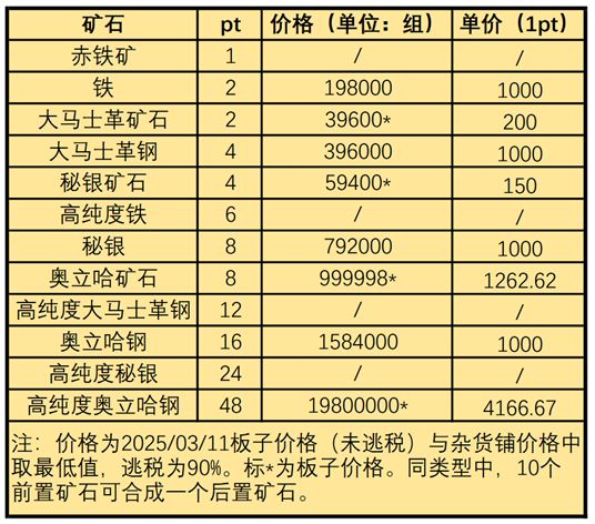 矿石与pt点数与参考价格