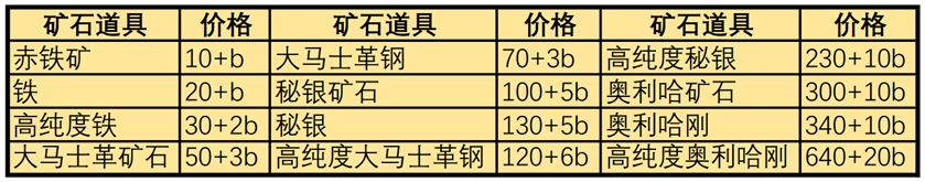 铁匠铺精炼价格一览表