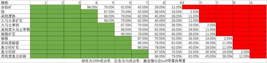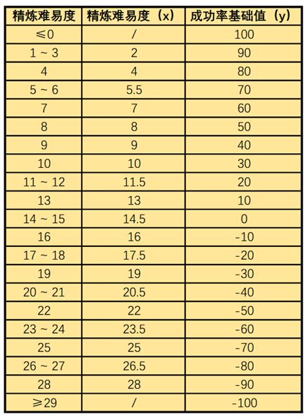 精炼难易度与成功率基础值