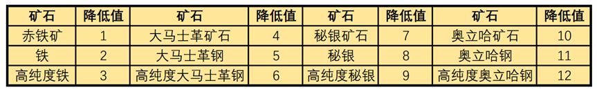 矿石与矿石降低值