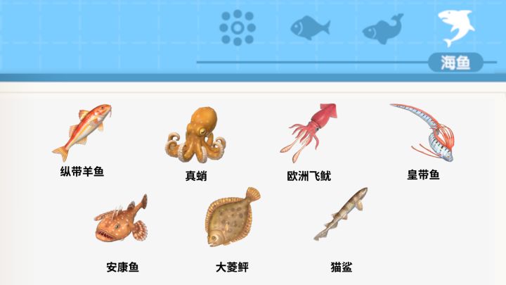 纵带羊鱼/安康鱼/真蛸/大菱鲆/欧洲飞鱿/猫鲨/皇带鱼