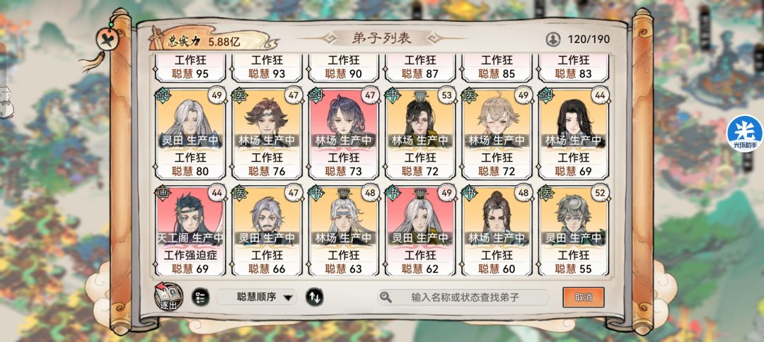 后续记得让每个弟子带好符文,每1点加成,等于1点智慧,聚灵,培植,阵法,