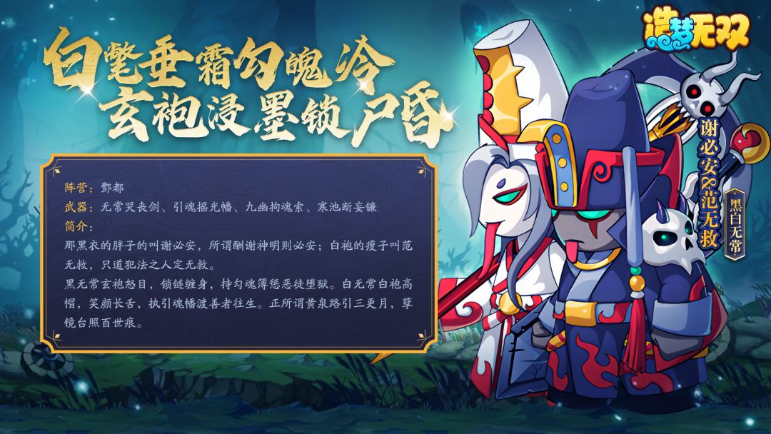 黑无常玄袍怒目,锁链缠身,持勾魂簿惩恶徒堕狱。白无常白袍高帽,笑颜长舌,执引魂幡渡善者往生。正所谓黄泉路引三更月,孽镜台照百世痕。