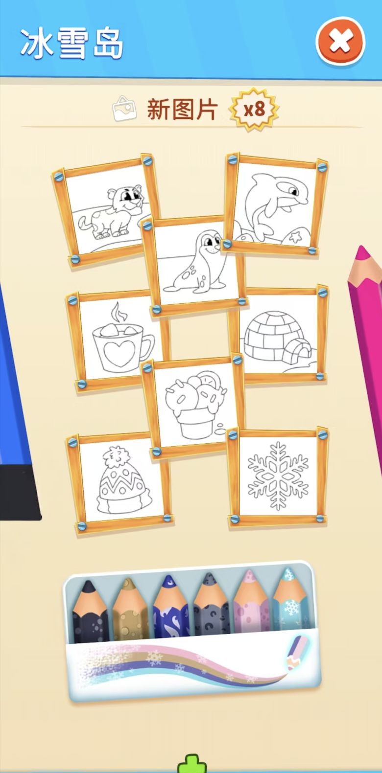 在冰雪岛上,你可以用画笔为雪豹、虎鲸和海豹,以及岛上的风景描绘自己喜欢的色彩。每一次绘画都是对冒险的记录,每一次完成都是对美好的纪念。通过收集和绘制照片,你将解锁更多隐藏的奖励,让这段旅程更加难忘!