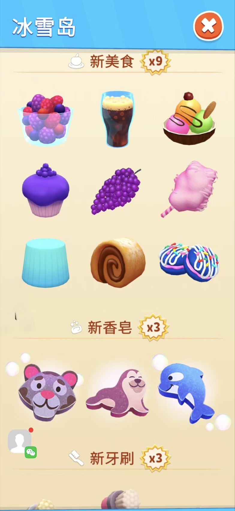 来冰雪岛冒险,怎么能少了专属美食呢?冰冻可乐、蓝莓蛋糕、布丁、葡萄、甜甜圈……这些美食不仅能快速补充探险能量,还能让你在寒冷的冬日中感受到温暖。吃完后,还能来一场放松的泡泡澡。更有冰雪主题的香皂和牙刷,让汉克狗保持清爽干净!